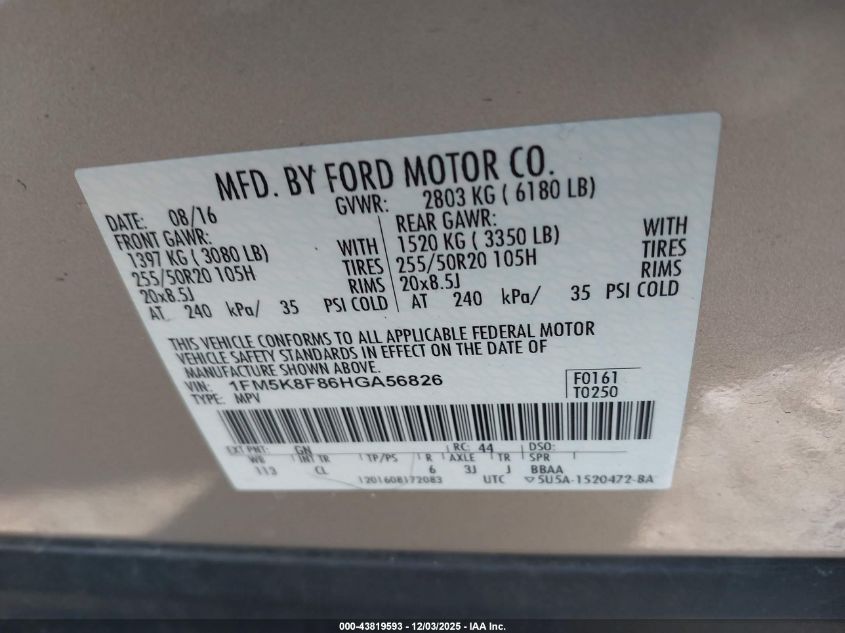 2017 FORD EXPLORER 2017 року Бензин, 3.5, Повний привід, vin - 1FM5K8F86HGA56826 з США