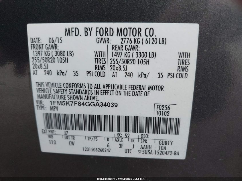Колір СірийЦиліндри 6Привід Передній привідVIN 1FM5K7F84GGA34039Стан Заводиться та їде (перевірено)Ушкодження Передня права AutoRIA