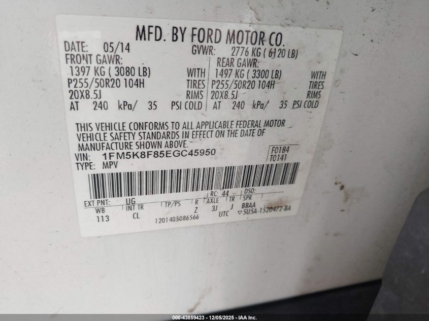 Колір БілийЦиліндри 6Привід Повний привідVIN 1FM5K8F85EGC45950Стан Заводиться та їде (перевірено)Ушкодження Передня або задня AutoRIA