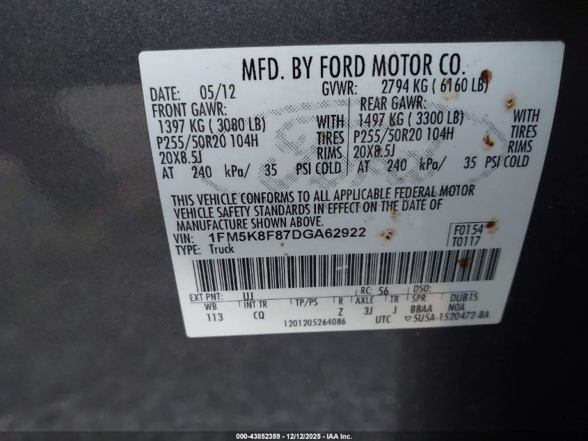 Колір СірийЦиліндри 6Привід Повний привідVIN 1FM5K8F87DGA62922Стан СтаціонарноУшкодження Звичайний знос AutoRIA