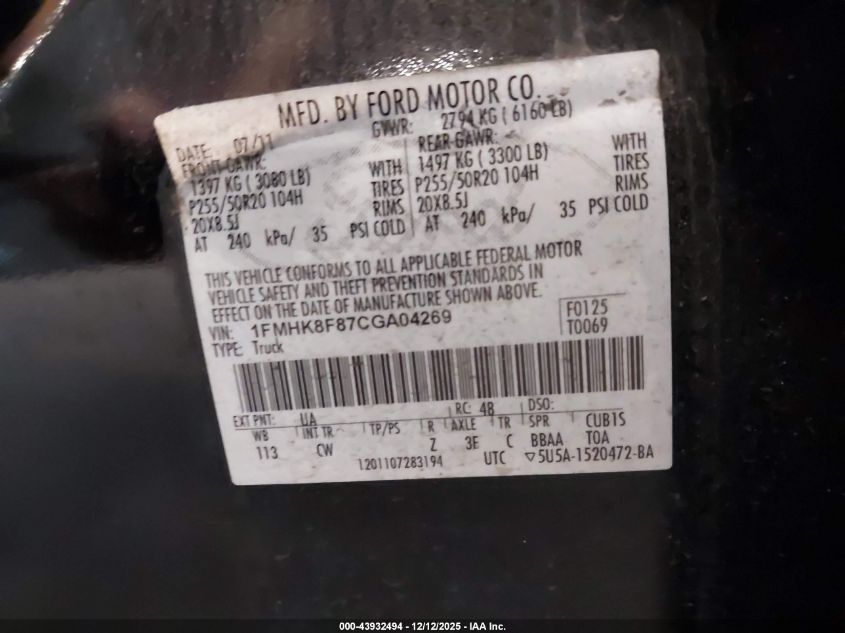 Колір ЧорнийЦиліндри 6Привід Повний привідVIN 1FMHK8F87CGA04269Стан Заводиться та їде (перевірено)Ушкодження Задня ліва AutoRIA