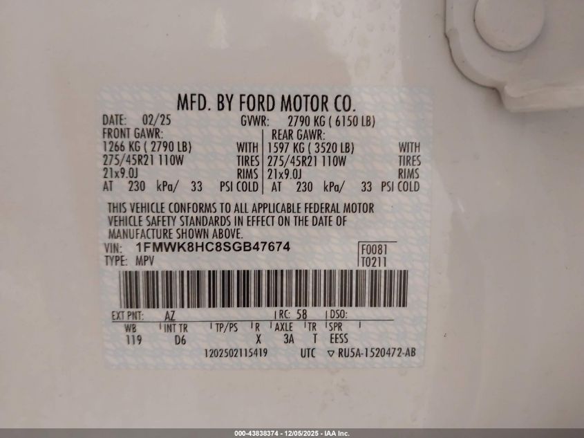 Колір БілийЦиліндри 6Привід Повний привідVIN 1FMWK8HC8SGB47674Стан Заводиться та їде (перевірено)Ушкодження Передня або задня