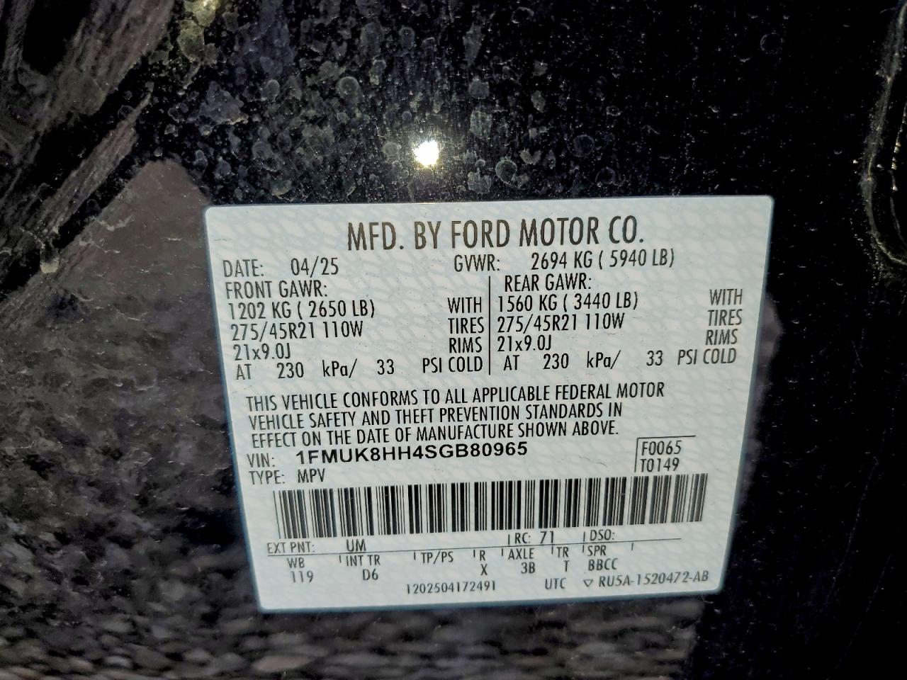 Колір ЧорнийЦиліндри 4Привід 4x4 з заднім приводомVIN 1FMUK8HH4SGB80965Стан НевідомоУшкодження Передня або задняДата аукціону 2025-12-15