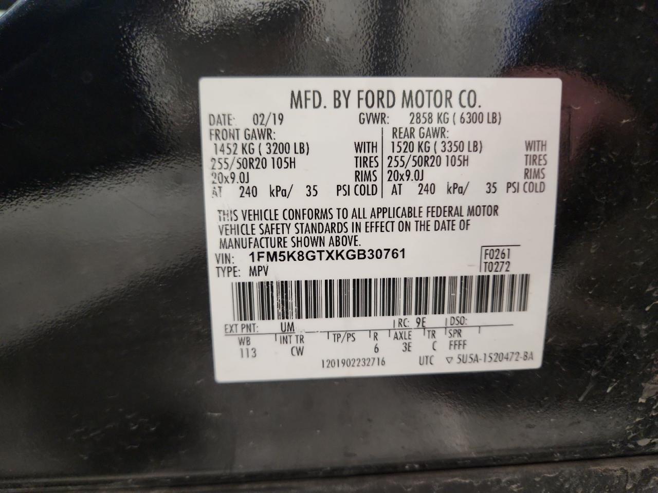 Колір ЧорнийЦиліндри 6Привід 4x4 з переднім приводомVIN 1FM5K8GTXKGB30761Стан Заводиться та їде (перевірено)Ушкодження Передня або задня AutoRIA