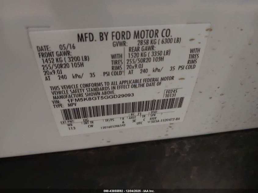 2016 FORD EXPLORER 2016 року Бензин, 3.5, Повний привід, vin - 1FM5K8GT5GGD29093 з США