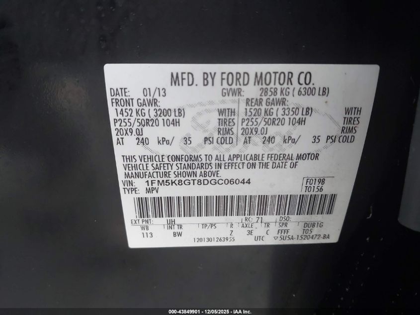 2013 FORD EXPLORER 2013 року Бензин, 3.5, Повний привід, vin - 1FM5K8GT8DGC06044 з США