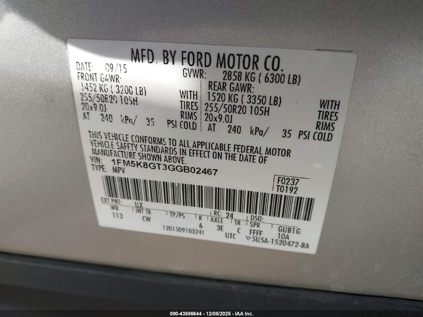 2016 FORD EXPLORER 2016 року Бензин, 3.5, Повний привід, vin - 1FM5K8GT3GGB02467 з США