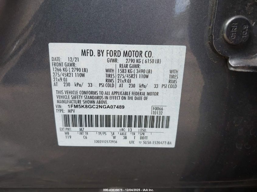 Колір СірийЦиліндри 6Привід Повний привідVIN 1FM5K8GC2NGA07489Стан Заводиться та їде (перевірено)Ушкодження Передня або задня AutoRIA