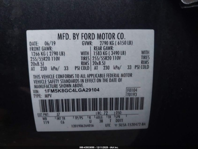Колір СірийЦиліндри 6Привід Повний привідVIN 1FM5K8GC4LGA29104Стан Заводиться та їде (перевірено)Ушкодження Передня або задня AutoRIA