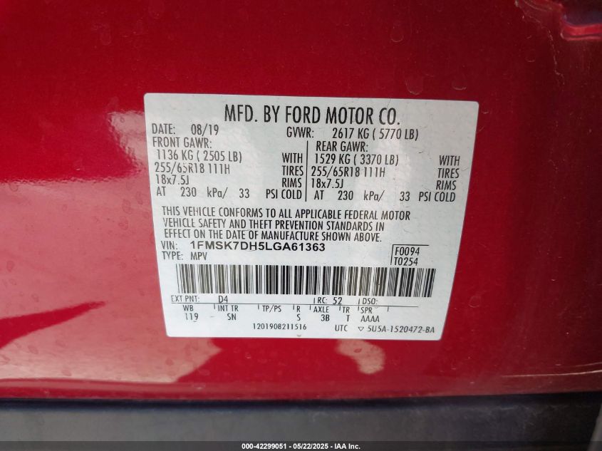 Колір ЧервонийЦиліндри 4VIN 1FMSK7DH5LGA61363Стан Заводиться та їде (перевірено)Ушкодження ЗадняДата аукціону 2025-12-09 AutoRIA