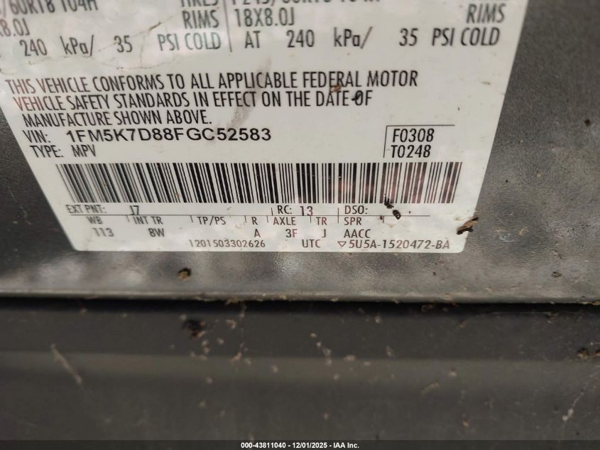 Колір СірийЦиліндри 6Привід Передній привідVIN 1FM5K7D88FGC52583Стан ЗаводитьсяУшкодження Передня або задняДата аукціону 2025-12-08 AutoRIA
