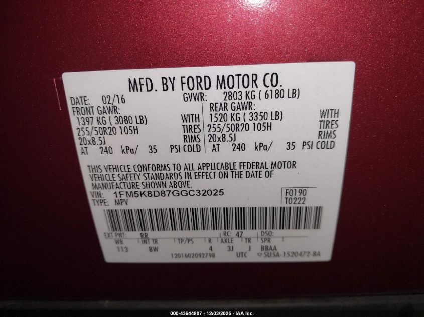 Колір ЧервонийЦиліндри 6Привід Повний привідVIN 1FM5K8D87GGC32025Стан Заводиться та їде (перевірено)Ушкодження Передня або задня AutoRIA