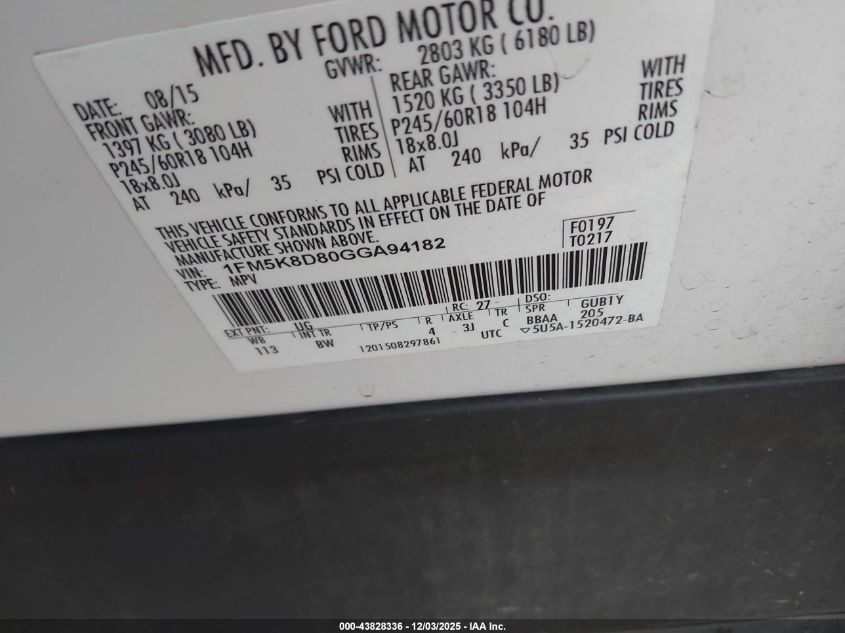 2016 FORD EXPLORER 2016 року Бензин, 3.5, Повний привід, vin - 1FM5K8D80GGA94182 з США