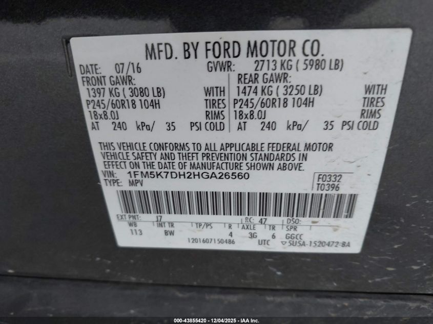 Колір СірийЦиліндри 4Привід Передній привідVIN 1FM5K7DH2HGA26560Стан Заводиться та їде (перевірено)Ушкодження Передня або задня AutoRIA