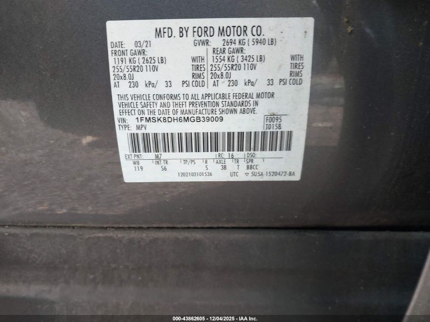 Колір СірийЦиліндри 4Привід Повний привідVIN 1FMSK8DH6MGB39009Стан Заводиться та їде (перевірено)Ушкодження Передня або задня AutoRIA
