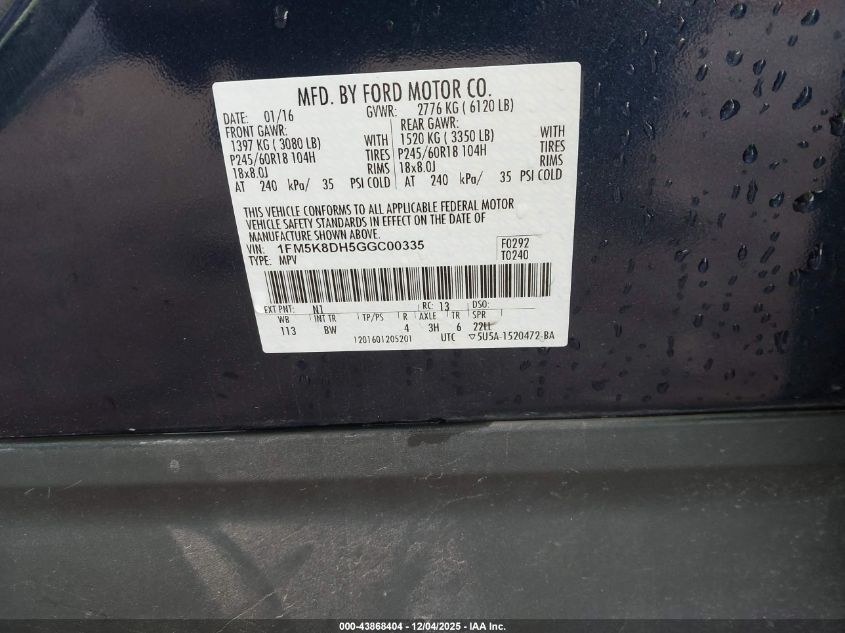 2016 FORD EXPLORER 2016 року Бензин, 2.3, Повний привід, vin - 1FM5K8DH5GGC00335 з США