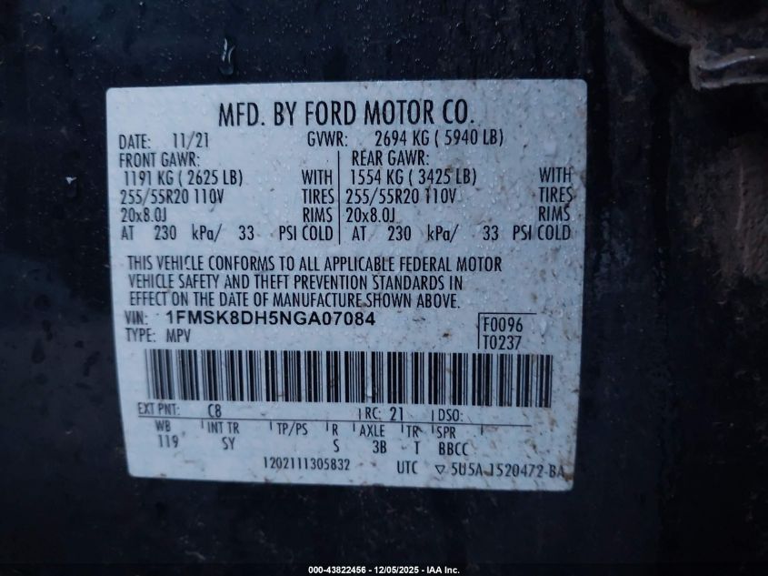 Колір МілітаріЦиліндри 4Привід Повний привідVIN 1FMSK8DH5NGA07084Стан Заводиться та їде (перевірено)Ушкодження Передня або задня AutoRIA