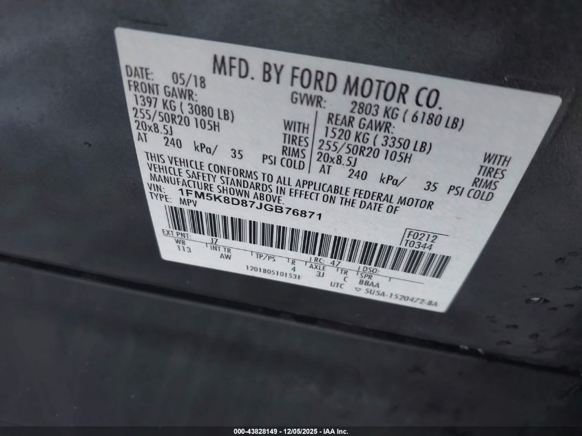 Колір СірийЦиліндри 6Привід Повний привідVIN 1FM5K8D87JGB76871Стан Заводиться та їде (перевірено)Ушкодження Передня або задня AutoRIA