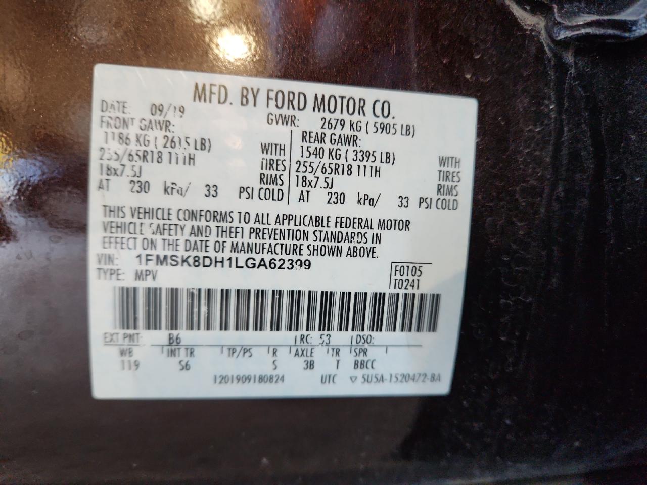 Колір БордовийЦиліндри 4Привід 4x4 з заднім приводомVIN 1FMSK8DH1LGA62399Стан Заводиться та їде (перевірено)Ушкодження Передня або задня AutoRIA