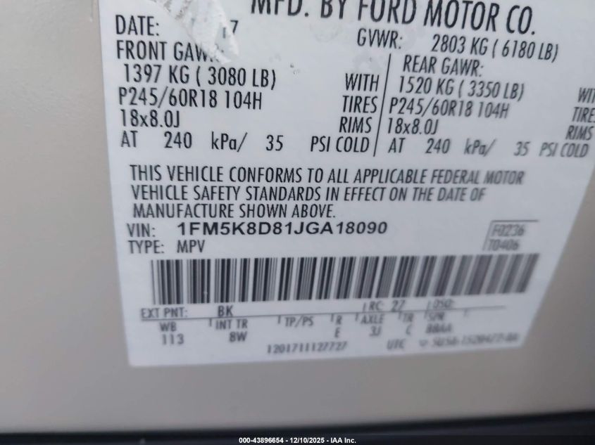 Колір БежевийЦиліндри 6Привід Повний привідVIN 1FM5K8D81JGA18090Стан Заводиться та їде (перевірено)Ушкодження Передня або задня AutoRIA