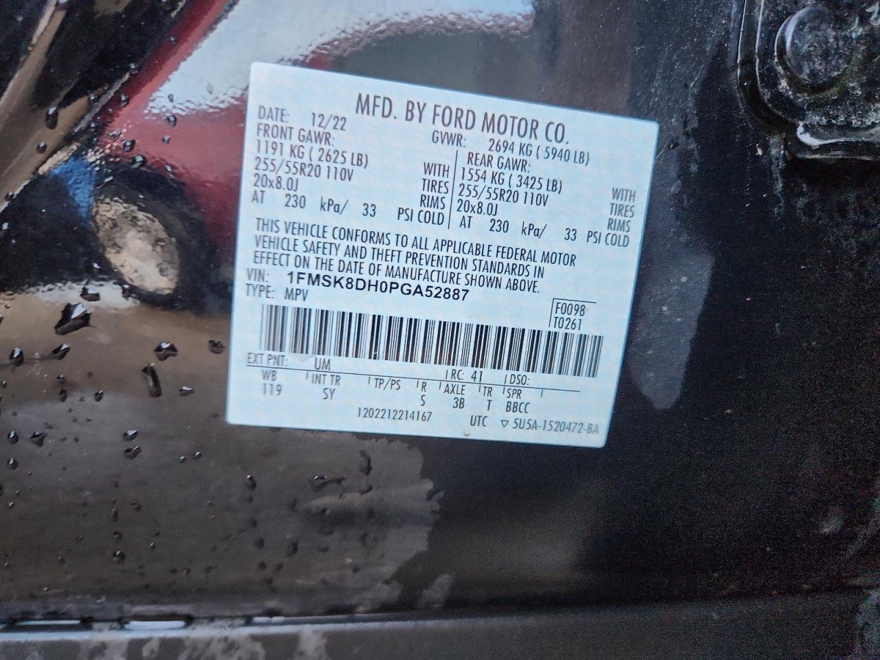 Колір ЧорнийЦиліндри 4Привід 4x4 з заднім приводомVIN 1FMSK8DH0PGA52887Стан Заводиться та їде (перевірено)Ушкодження Задня AutoRIA