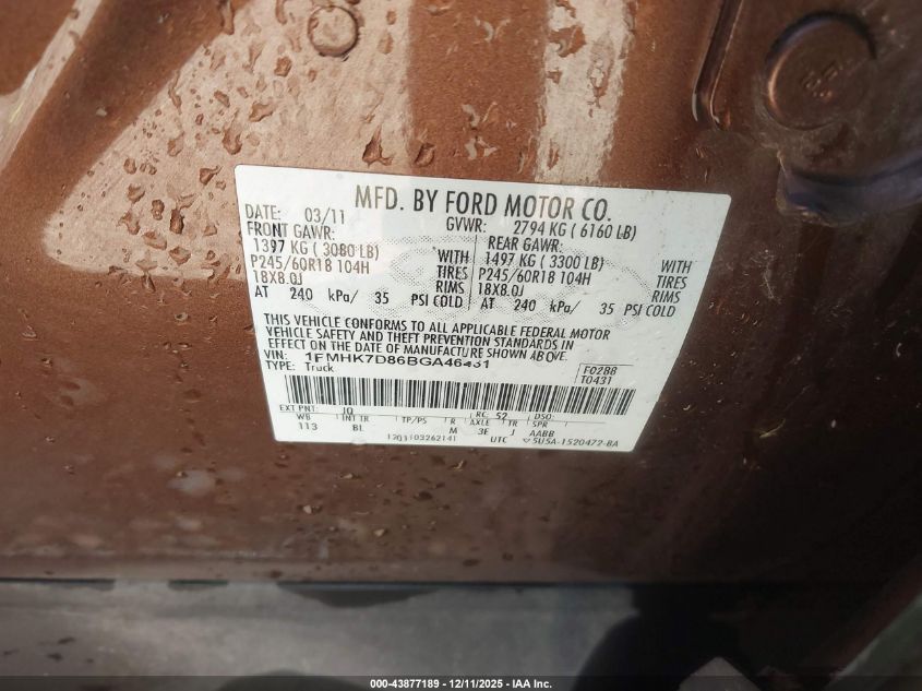 2011 FORD EXPLORER 2011 року Бензин, 3.5, Передній привід, vin - 1FMHK7D86BGA46461 з США