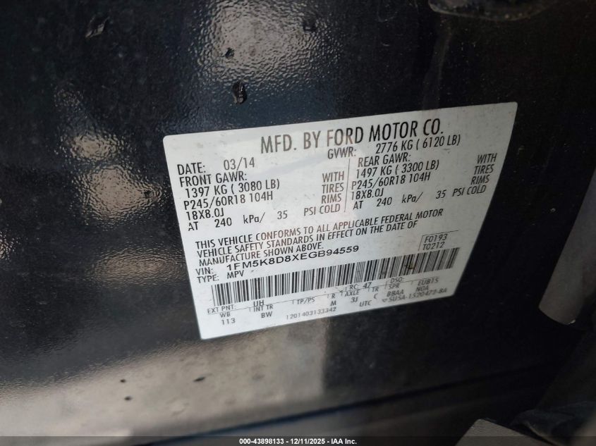2014 FORD EXPLORER 2014 року Бензин, 3.5, Повний привід, vin - 1FM5K8D8XEGB94559 з США
