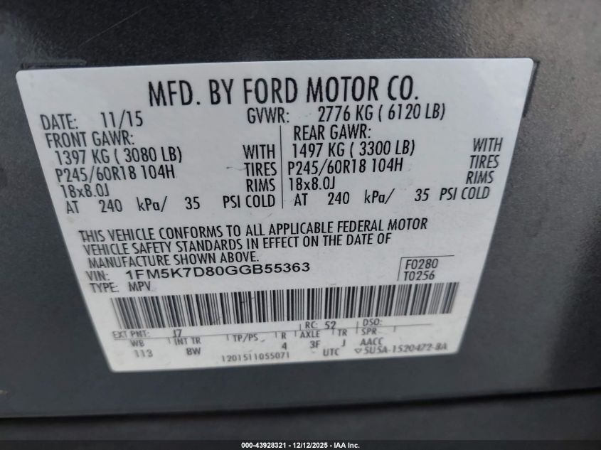 2016 FORD EXPLORER 2016 року Бензин, 3.5, Передній привід, vin - 1FM5K7D80GGB55363 з США