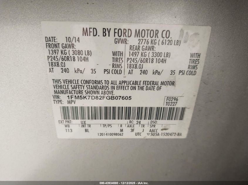 Колір СрібнийЦиліндри 6Привід Передній привідVIN 1FM5K7D82FGB07605Стан Заводиться та їде (перевірено)Ушкодження Передня або задня AutoRIA