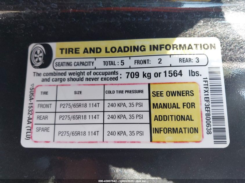 2014 FORD F-150 2014 року Бензин, 5.0, Повний привід, vin - 1FTFX1EF3EFB00638 з США