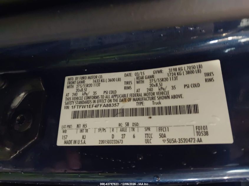 2015 FORD F-150 2015 року Бензин, 5.0, Повний привід, vin - 1FTFW1EF4FFA88357 з США