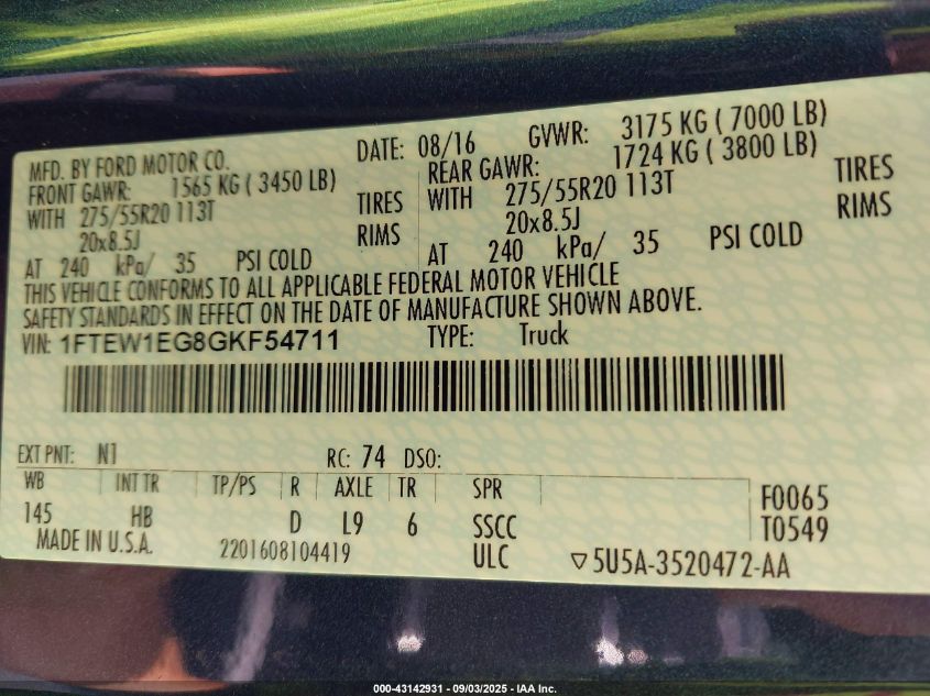 2016 FORD F-150 2016 року Бензин, 3.5, Повний привід, vin - 1FTEW1EG8GKF54711 з США