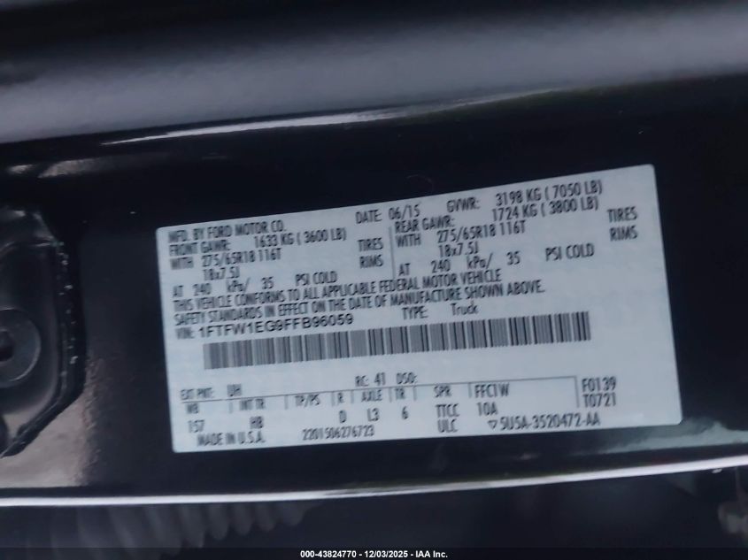 2015 FORD F-150 2015 року Бензин, 3.5, Повний привід, vin - 1FTFW1EG9FFB96059 з США