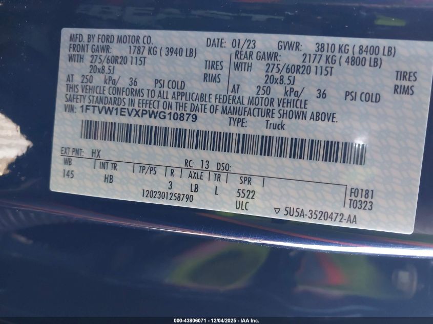 Колір СинійПривід Повний привідVIN 1FTVW1EVXPWG10879Стан Заводиться та їде (перевірено)Ушкодження Передня або задня AutoRIA