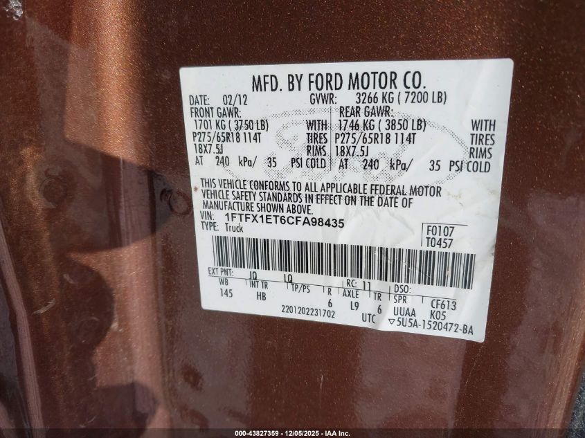 2012 FORD F-150 2012 року Бензин, 3.5, Повний привід, vin - 1FTFX1ET6CFA98435 з США