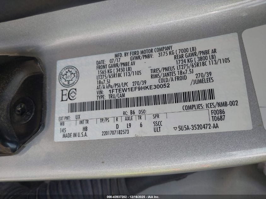 2017 FORD F-150 2017 року Бензин, 5.0, Повний привід, vin - 1FTEW1EF9HKE30052 з США