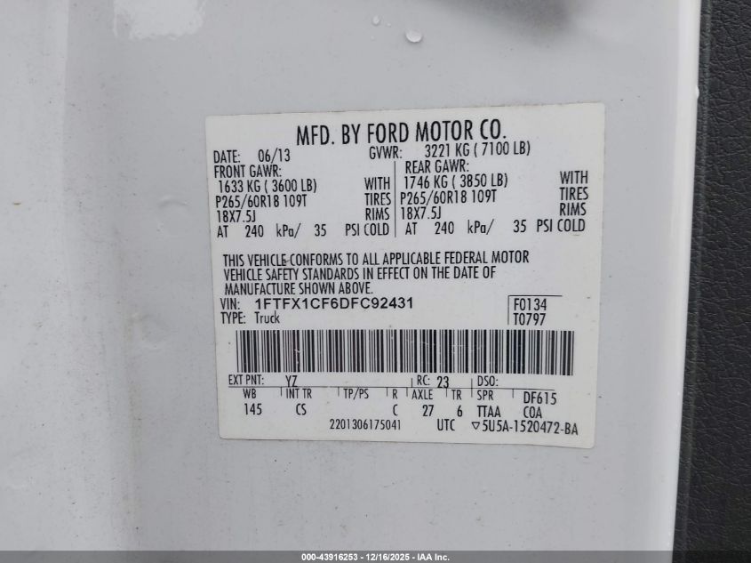 2013 FORD F-150 2013 року Бензин, 5.0, , vin - 1FTFX1CF6DFC92431 з США