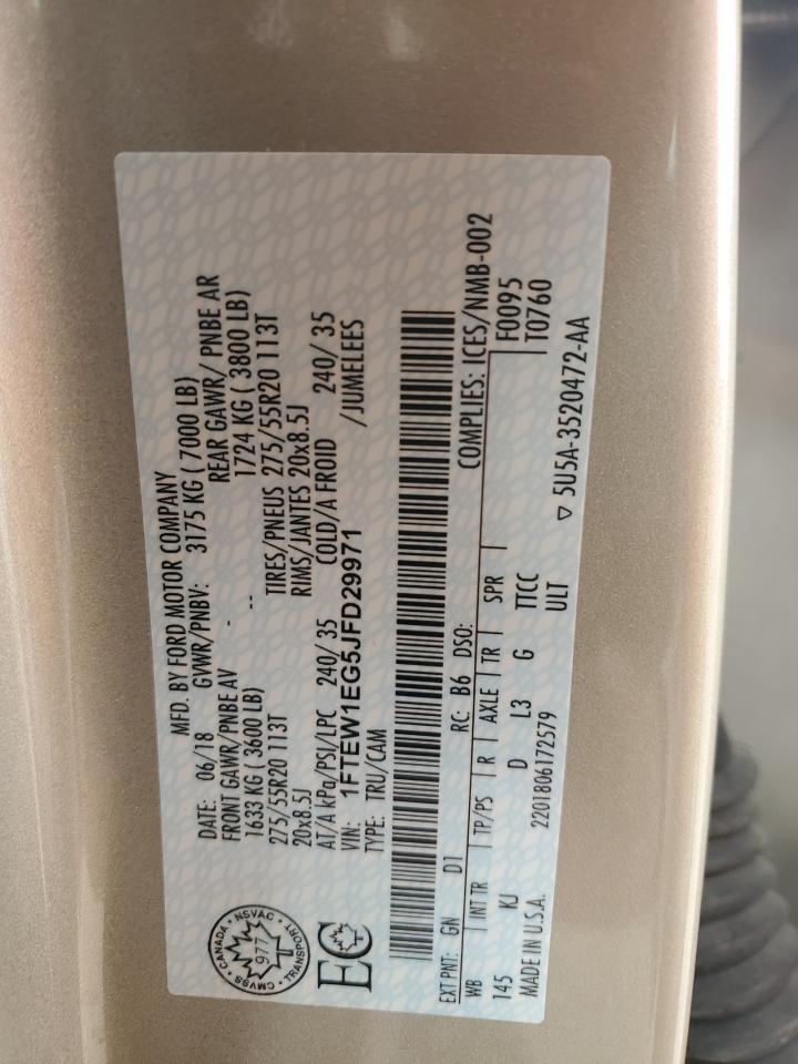 2018 FORD F-150 2018 року Бензин, 3.5, 4x4 з заднім приводом, vin - 1FTEW1EG5JFD29971 з США