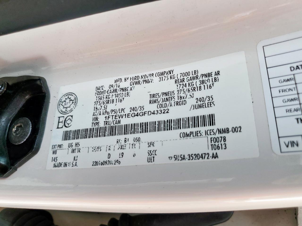 Колір БілийЦиліндри 6Привід 4x4 з заднім приводомVIN 1FTEW1EG4GFD43322Стан Заводиться та їде (перевірено)Ушкодження Град AutoRIA