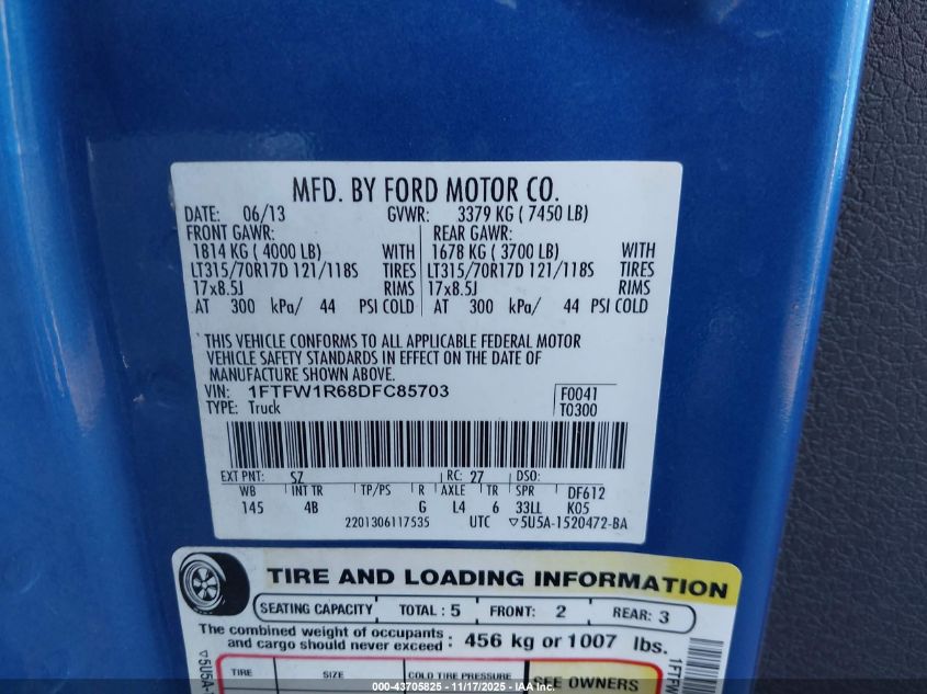 2013 FORD F-150 2013 року Бензин, 6.2, Повний привід, vin - 1FTFW1R68DFC85703 з США