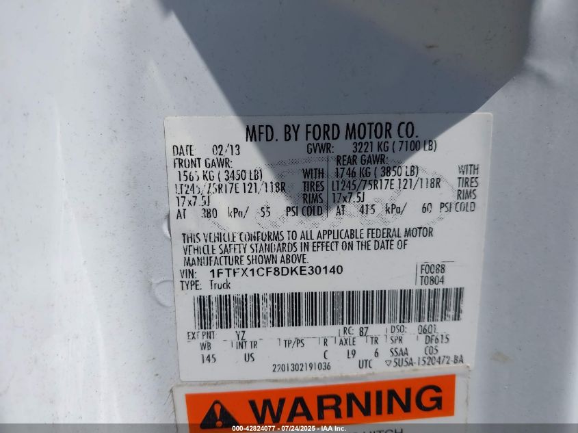 Колір БілийЦиліндри 8VIN 1FTFX1CF8DKE30140Стан СтаціонарноУшкодження Біо/Хімічні AutoRIA