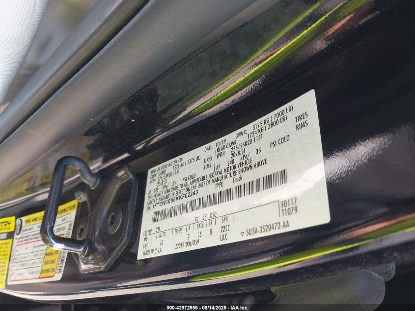 2019 FORD F-150 2019 року Бензин, 5.0, Повний привід, vin - 1FTEW1E56KKF02243 з США