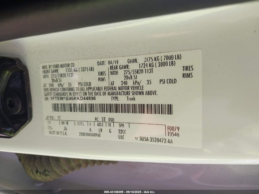 2019 FORD F-150 2019 року Бензин, 3.5, Повний привід, vin - 1FTEW1E46KKD44896 з США