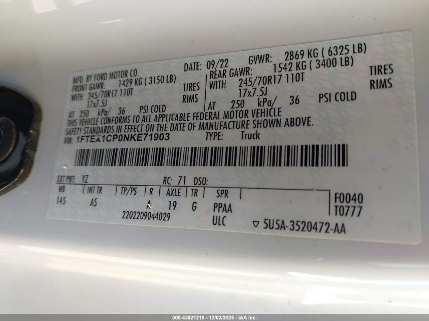 2022 FORD F-150 2022 року Бензин, 2.7, , vin - 1FTEX1CP0NKE71903 з США