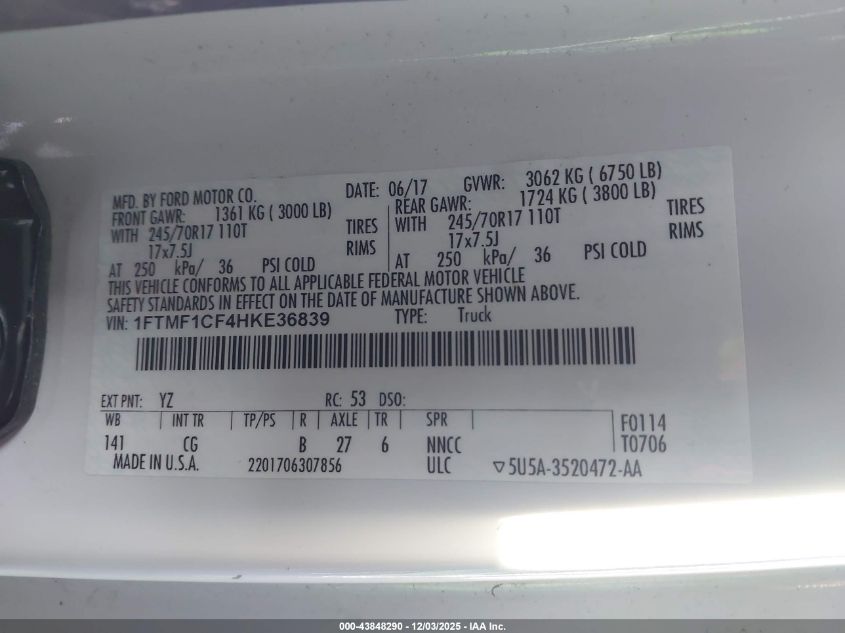 2017 FORD F-150 2017 року Бензин, 5.0, , vin - 1FTMF1CF4HKE36839 з США