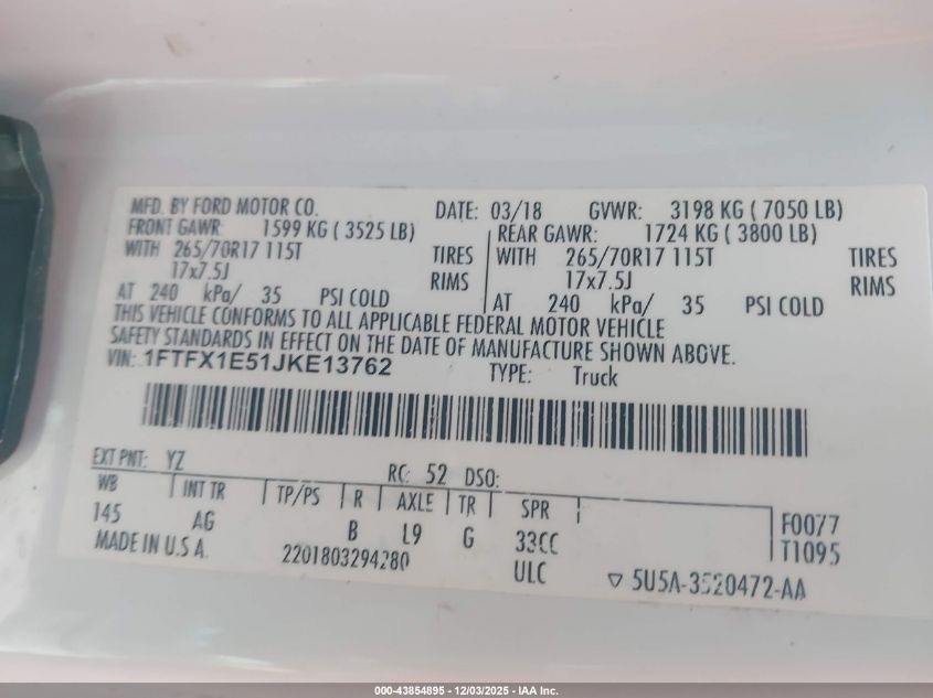 2018 FORD F-150 2018 року Бензин, 5.0, Повний привід, vin - 1FTFX1E51JKE13762 з США