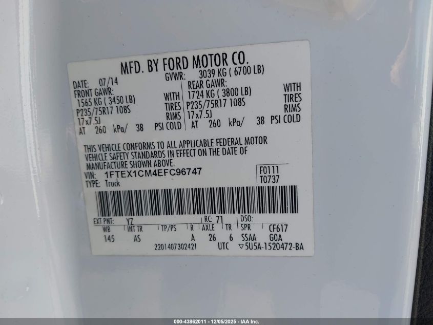 Колір БілийЦиліндри 6VIN 1FTEX1CM4EFC96747Стан СтаціонарноУшкодження Права сторона AutoRIA