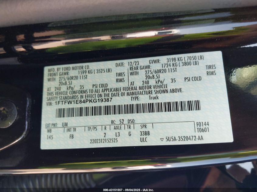 2023 FORD F-150 2023 року Бензин, 3.5, Повний привід, vin - 1FTFW1E84PKG19387 з США