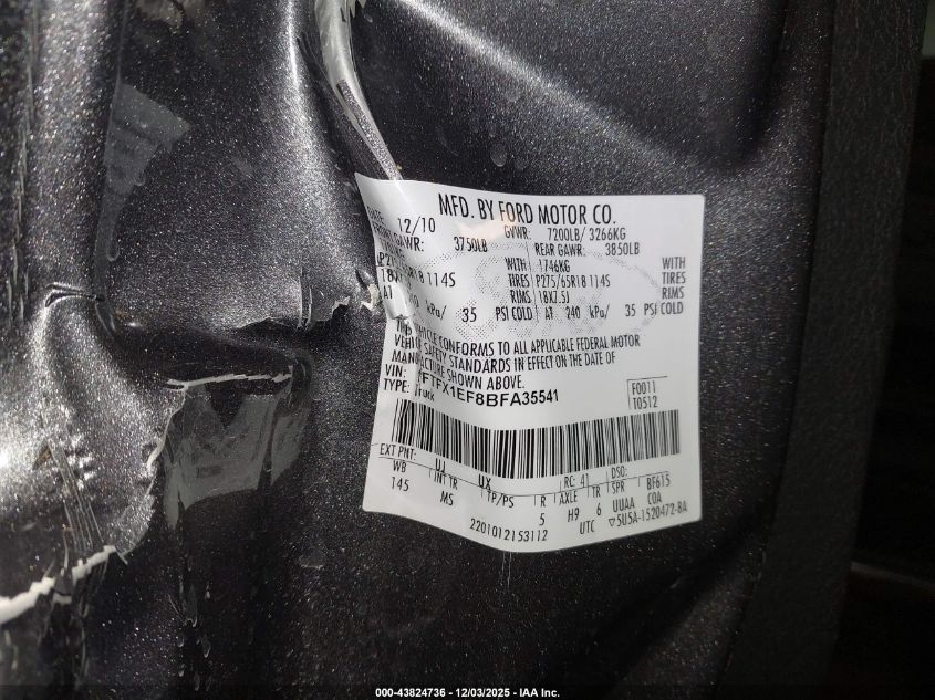 2011 FORD F-150 2011 року Бензин, 5.0, Повний привід, vin - 1FTFX1EF8BFA35541 з США