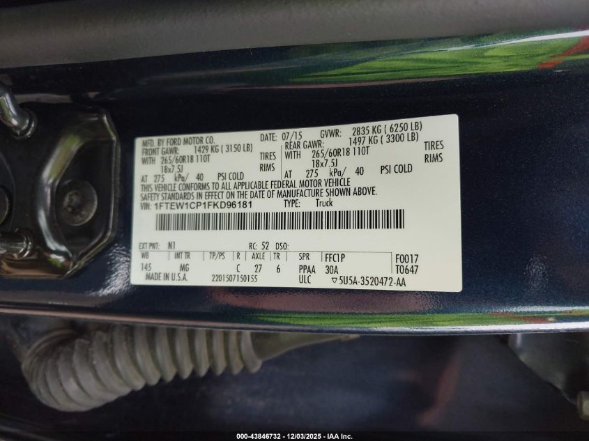 2015 FORD F-150 2015 року Бензин, 2.7, , vin - 1FTEW1CP1FKD96181 з США